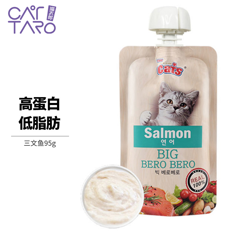 猫太郎CATTARO猫条零食猫咪零食肉泥猫条 宠物猫咪流质零食 挑嘴湿粮包猫条 营养膏状猫酱罐头95g/包三文鱼