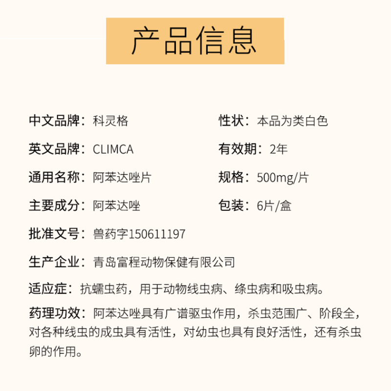 科灵格Climca 宠物狗狗中大型犬体内驱虫药金毛萨摩耶拉布拉多打虫药6片/盒