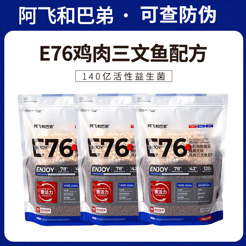阿飞和巴弟E76猫粮全价无谷冻干生骨肉低敏猫粮成猫幼猫增肥发腮 E76冻干猫粮-360g