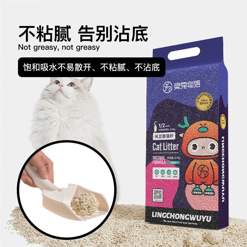 灵宠物语原味纯豆腐猫砂混合猫砂可冲厕所除味除臭砂10公斤快结团4袋装 豆腐猫砂2.7kg