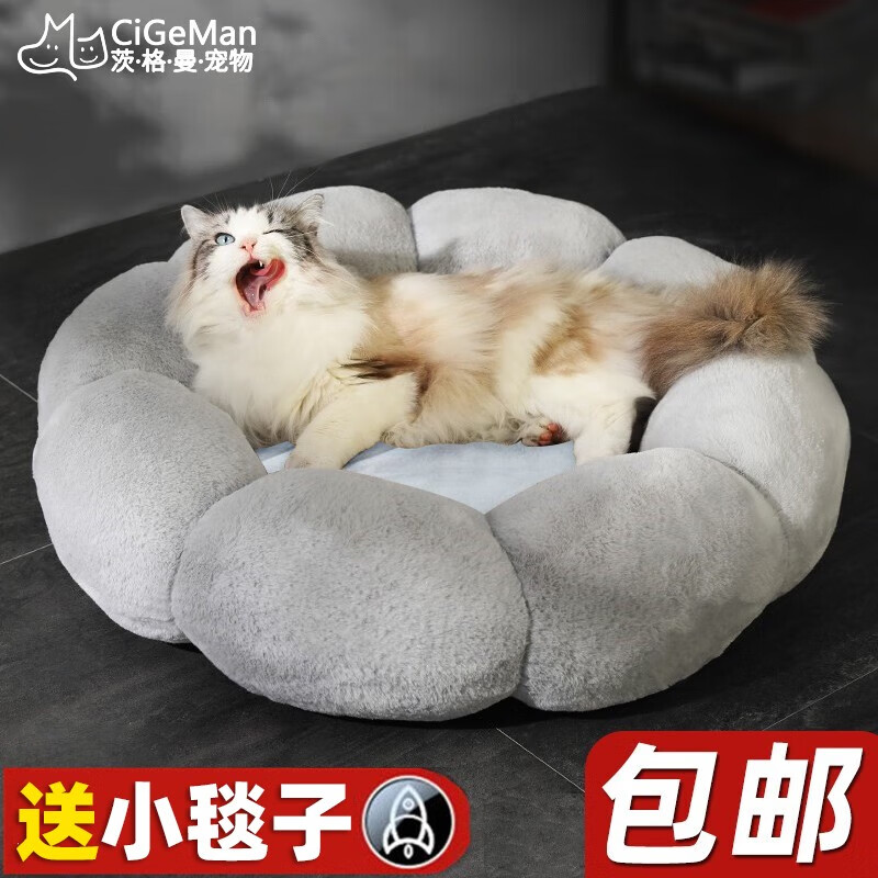 茨格曼 花瓣窝猫窝冬天加厚狗窝冬季保暖一体式小型犬宠物窝网红窝 花朵窝 全灰色 S号 【直径40cm】建议8斤内宠物