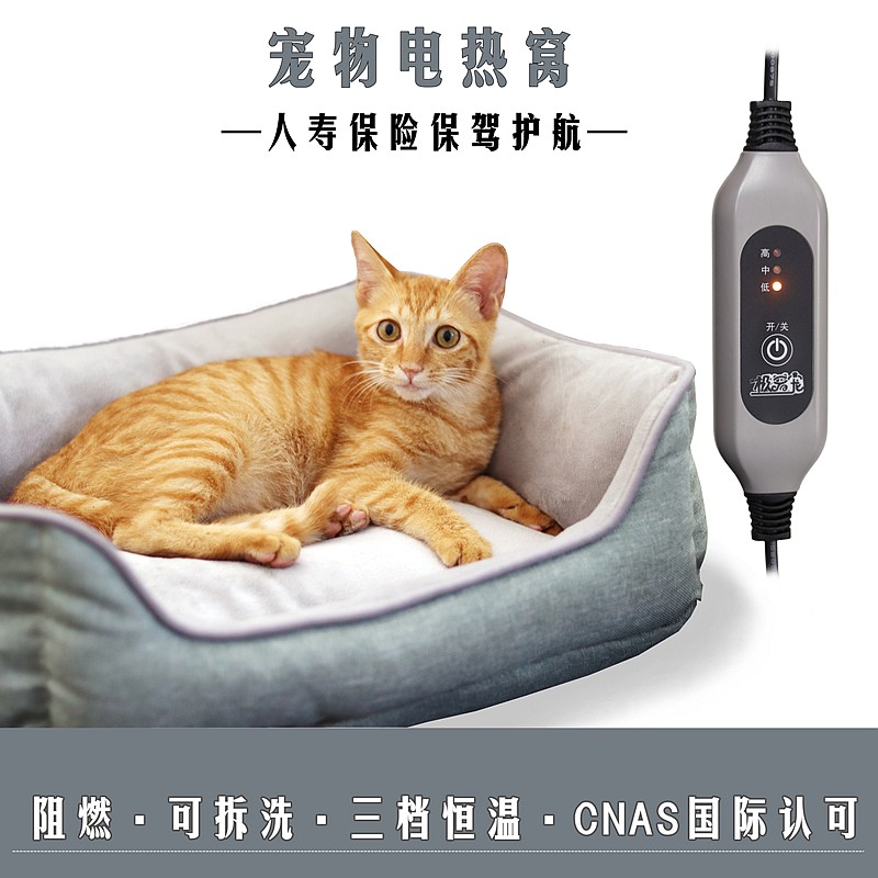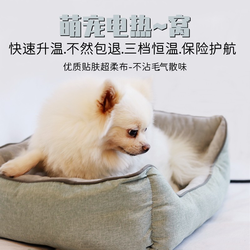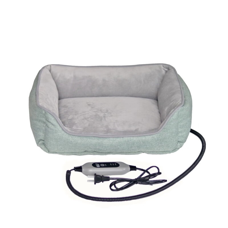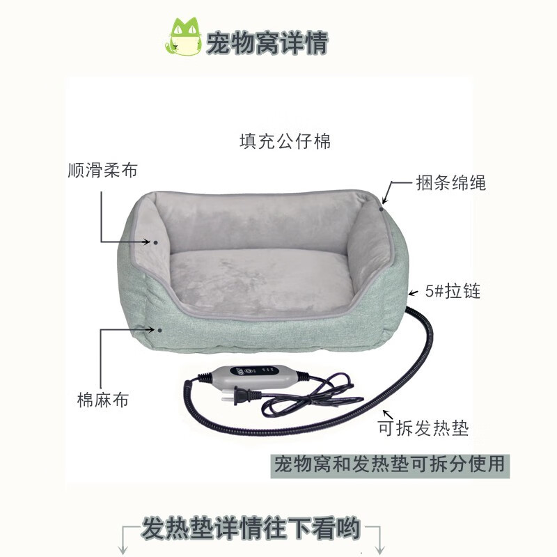 极爱宠 宠物电热窝猫窝狗窝小型犬智能恒温三档可调持续一个月不断电发热窝阻燃送保险充电式 淡绿色 (大号)41*51CM 围枕窝 发热垫(套装)