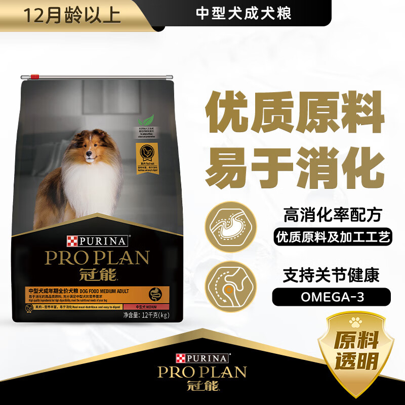 冠能狗粮中型犬成犬狗粮12kg 高消化吸收 呵护牙齿 关节健康