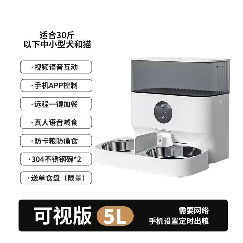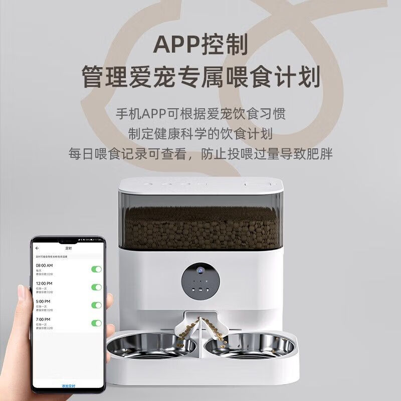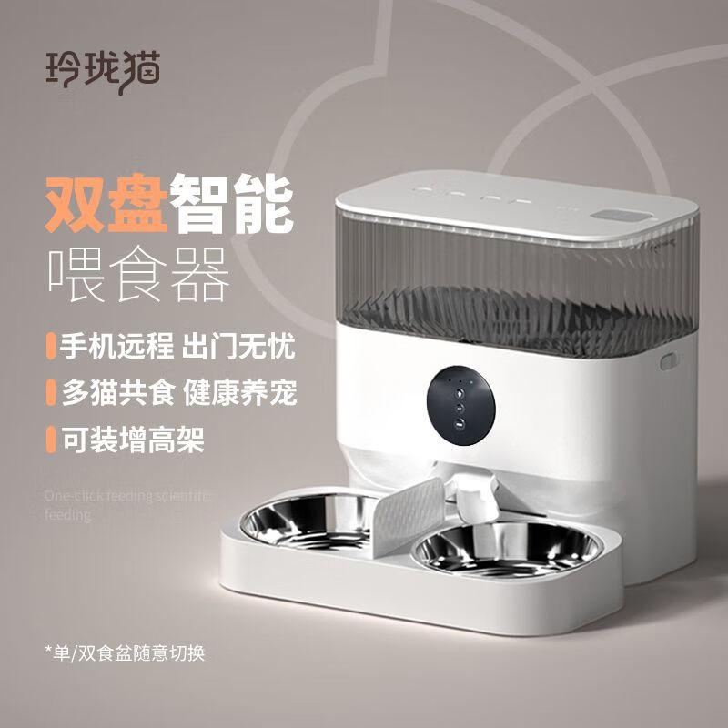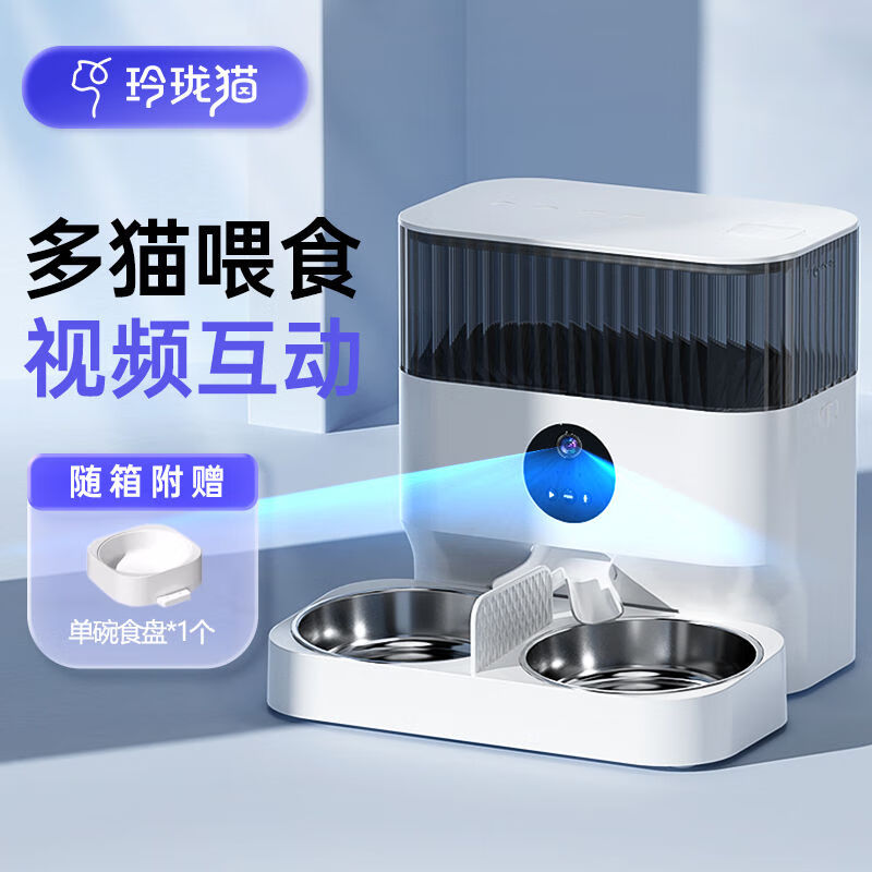 玲珑猫【新升级】自动喂食器双碗 宠物智能猫粮喂食机 猫咪投食机 5L喂食器-双碗款【多猫选配】 可视版【实时视频】
