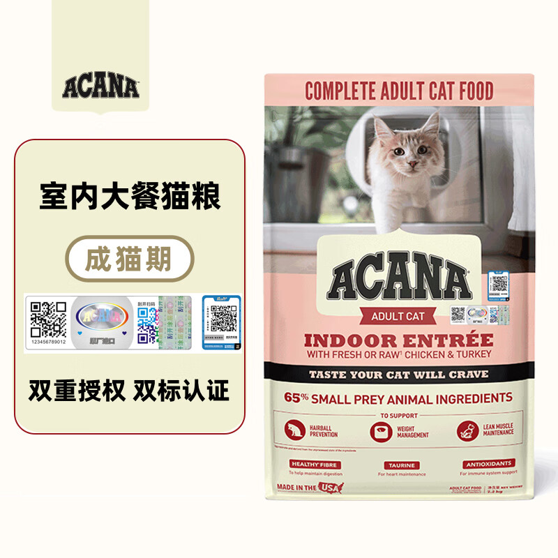 愛肯拿(ACANA)鸡肉猫粮爱肯拿牧场盛宴无谷成幼猫主粮原装进口宠物营养食品 【美版】室内大餐成猫粮7.2kg