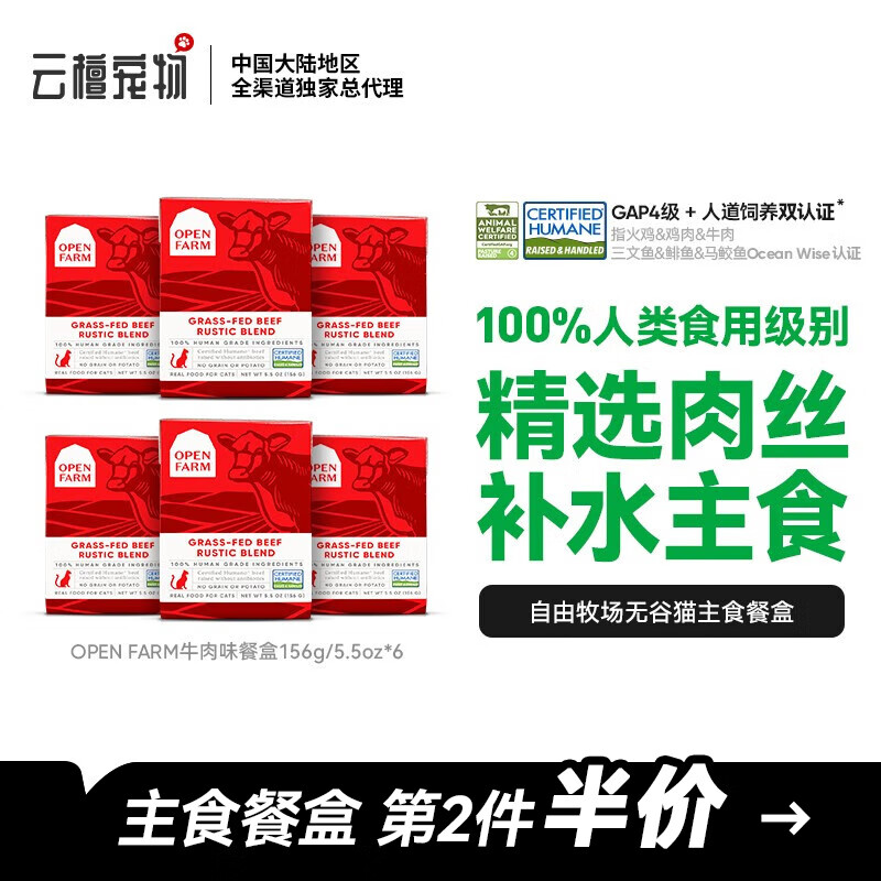 OPEN FARM自由牧场猫罐头无谷猫主粮猫湿粮猫餐盒 牛肉味*6