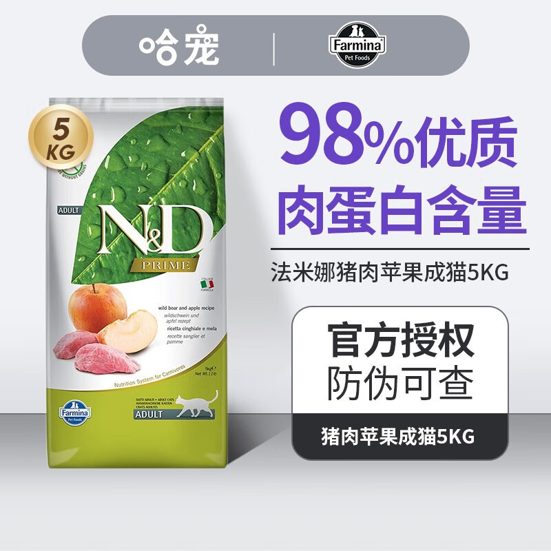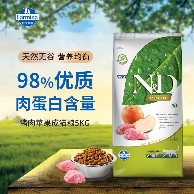 法米娜farmina猫粮法明娜精华无谷猫粮意大利进口成猫猫粮 猪肉苹果成猫5kg