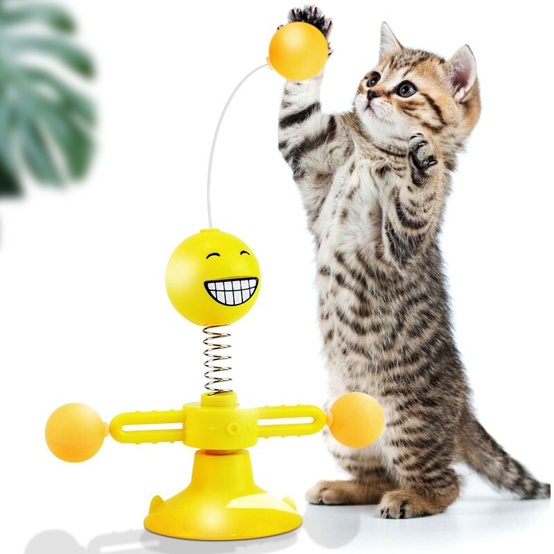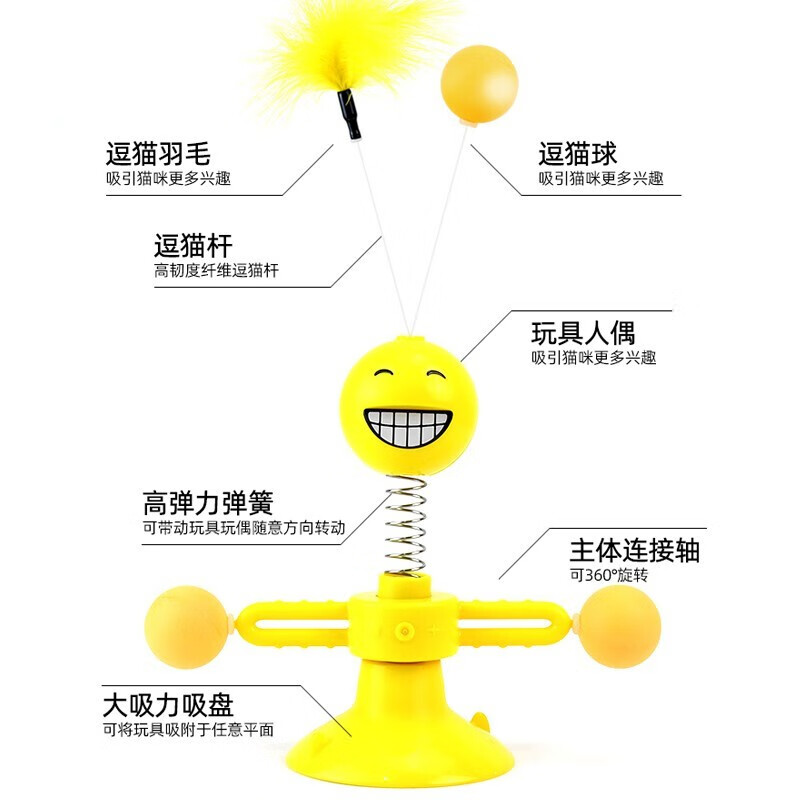 【升级激光版】坏小宠猫玩具猫转盘球自嗨不倒翁逗猫神器逗猫球 黄色转盘风车(逗猫羽毛 逗猫球)