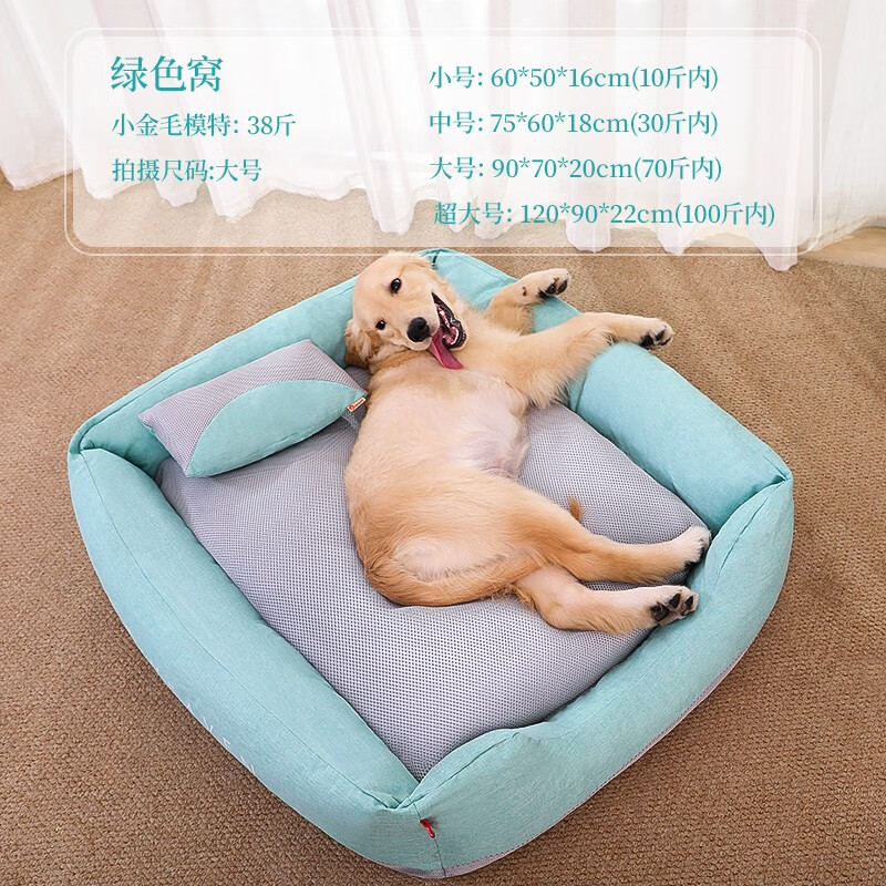 hoopet狗窝四季通用冬天保暖防撕咬冬季金毛睡觉用网红小狗窝宠物狗垫子 狗窝四季通用透气款绿色 M码-75*60*18(30斤内)