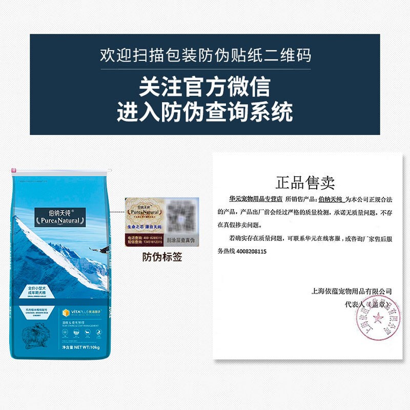 伯纳天纯狗粮 小型犬成犬幼犬狗粮 比熊泰迪狗粮雪纳瑞柯基天然粮博纳天纯狗粮 小型犬成犬10kg/20斤【低敏配方】