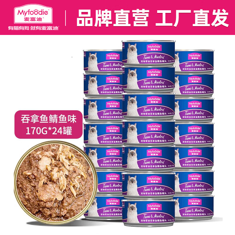 麦富迪 猫罐头 宠物猫咪零食猫湿粮罐头 吞拿鱼鲭鱼味 170g*24