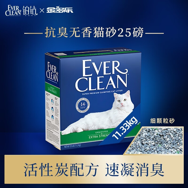 铂钻(EverClean)【美国原装进口】猫砂膨润土成猫幼猫通用型猫咪活性炭混合矿砂 绿标25磅