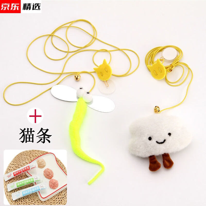 新型秋千逗猫玩具 网红家用挂门逗猫猫咪玩具悬挂式荡秋千无痕铃铛羽毛自嗨解闷神器 翅膀蜻蜓 大眼云朵-有5只猫条