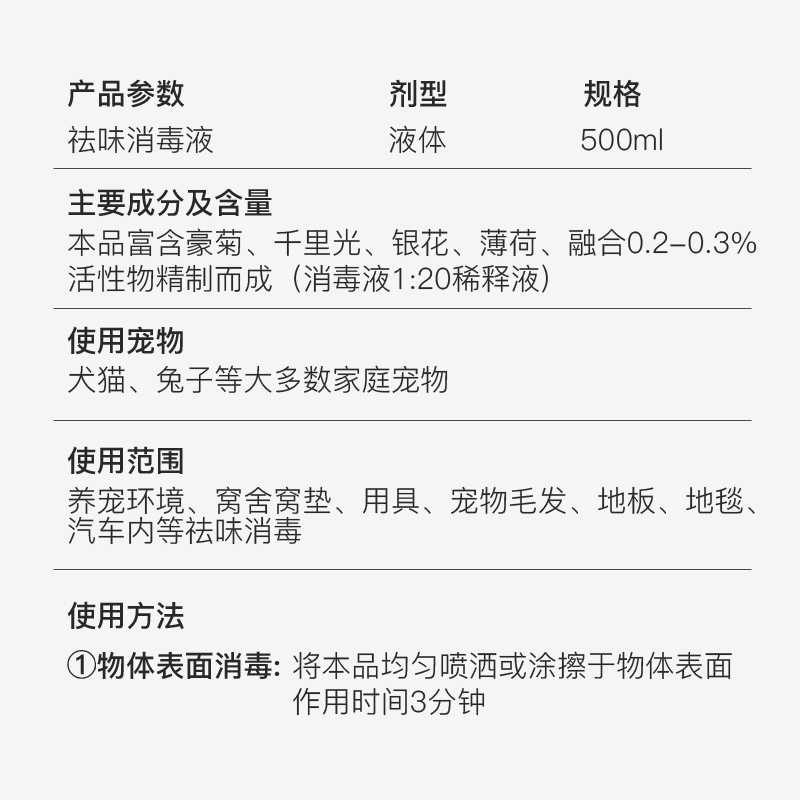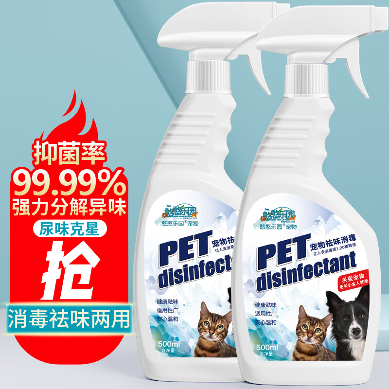 憨憨乐园 宠物消毒液【500ml*2瓶装】猫尿除味剂除臭抑菌消毒水 猫狗祛味环境清新剂