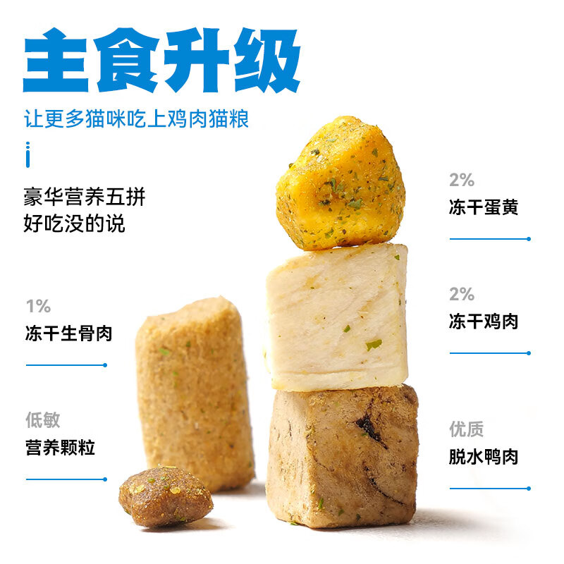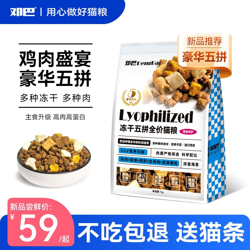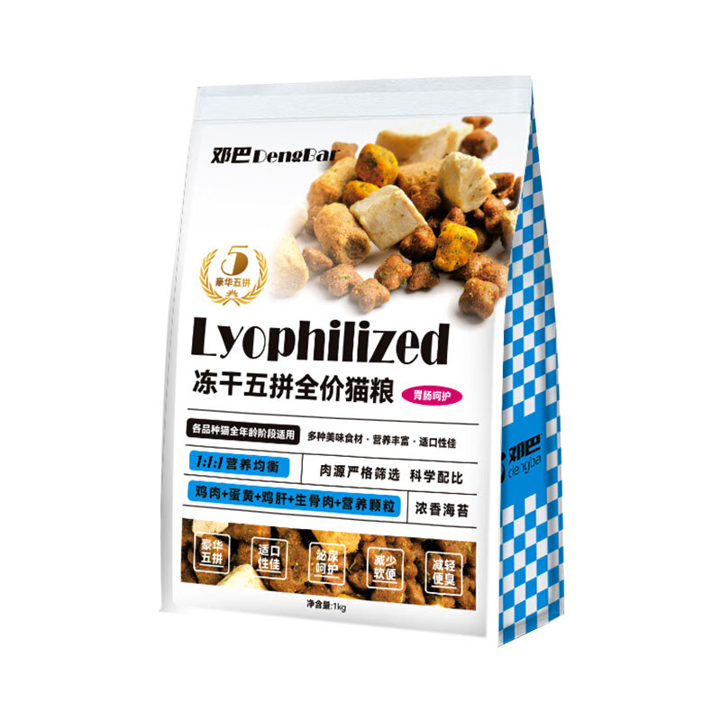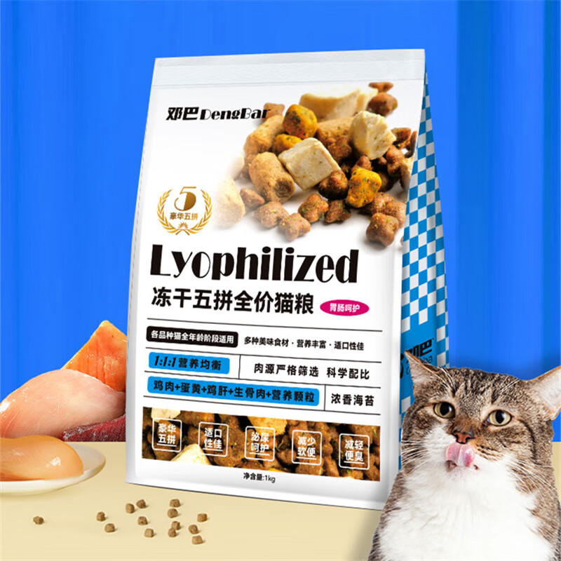 邓巴冻干五拼全价猫粮1kg装成猫粮全阶段营养鸡肉主食幼猫粮 2斤【送2条猫条】