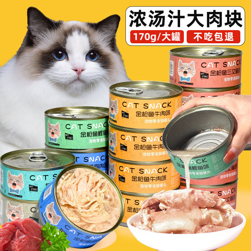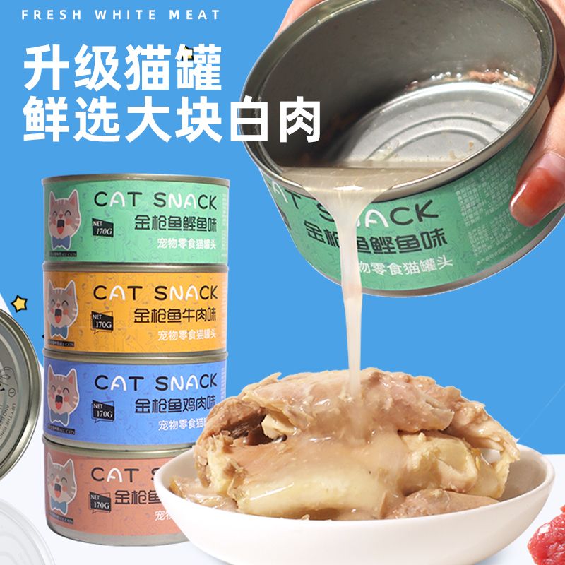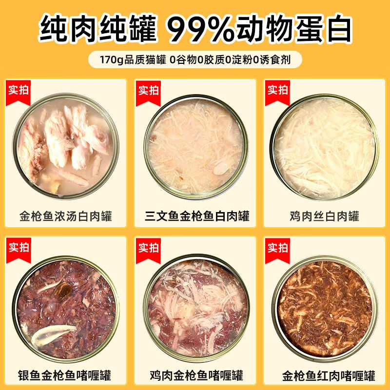 鱼七秒猫咪罐头营养增肥湿粮主食零食罐幼猫成猫猫条猫粮鸡肉味奶糕170g [白肉 红肉]组合罐 6罐170g[大罐1罐顶2罐]