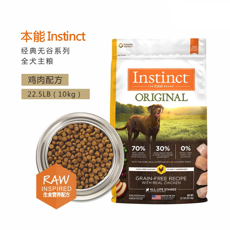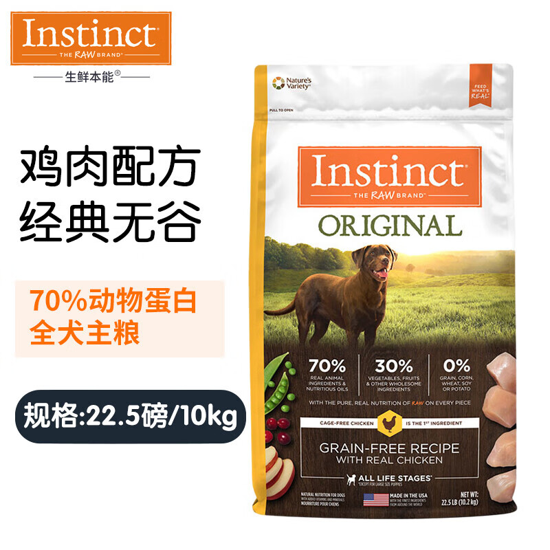 Instinct生鲜本能哈士奇狗粮零谷物冻干喷涂适口性强经典无谷 鸡肉 全犬粮【蛋白含量70%】22 无谷鸡肉全犬粮10kg