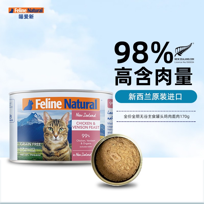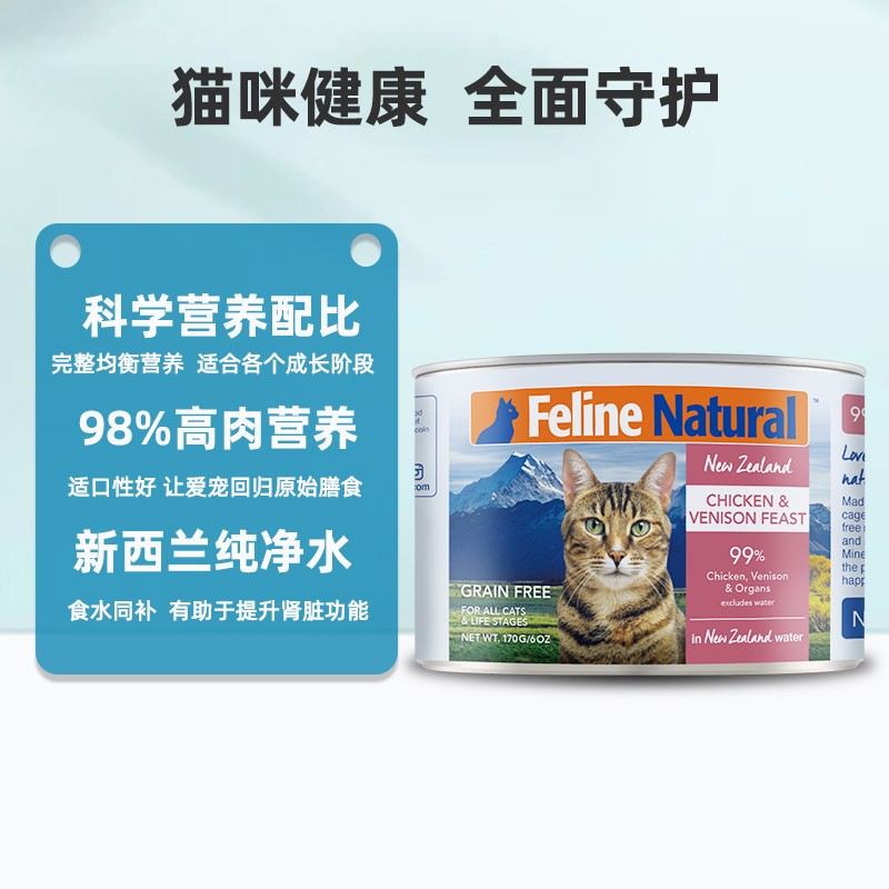 喵爱新(FELINE NATURAL)K9猫罐 新西兰原装进口成幼猫主食罐头 鸡肉鹿肉170g