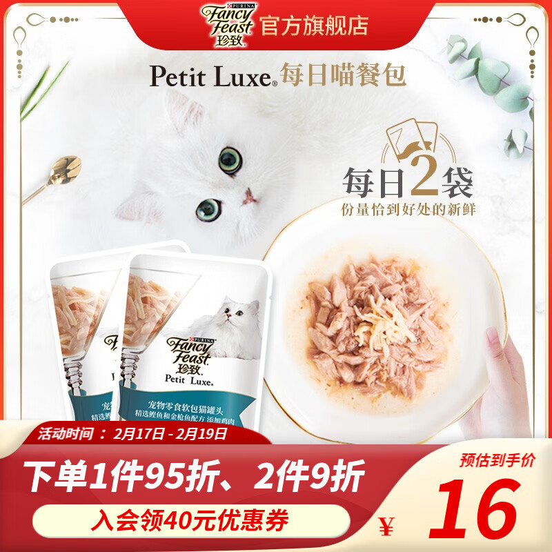 珍致 FancyFeast 每日餐包 精选鲣鱼配方整盒装 猫咪软罐头 浓郁高汤猫零食 35g*2 鲣鱼 金枪鱼 鸡肉