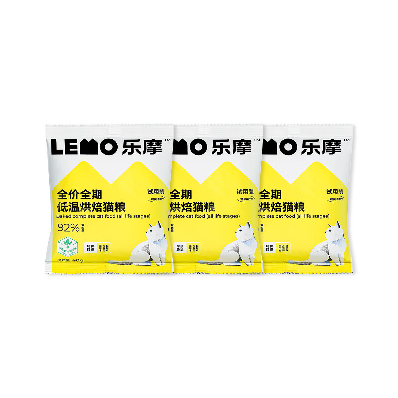 乐摩(lemo)猫粮试吃装全价全期烘焙猫粮试吃成猫幼猫通用无谷冻干全阶段猫粮 全价全期烘焙植萃猫粮120g