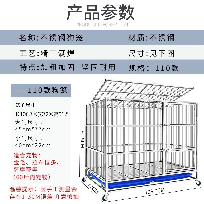 憨憨宠 不锈钢狗笼狗笼子大型犬中型犬小型犬狗狗宠物笼子家用金毛泰迪哈士奇拉布拉多德牧犬舍狗屋用品 中大型犬 110款 108*72*90cm