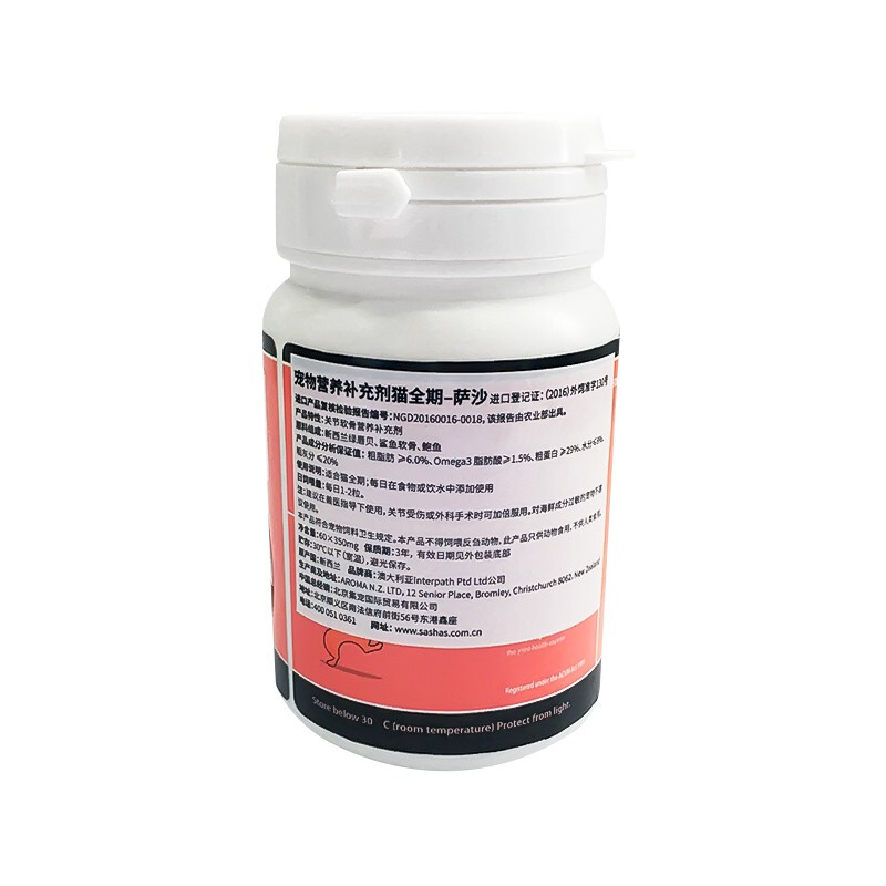 sashas萨沙宠物医疗保健/关节灵胶囊/鲨鱼软骨素/犬猫通用微量元素营养补充剂 猫专用关节灵胶囊 60粒/瓶