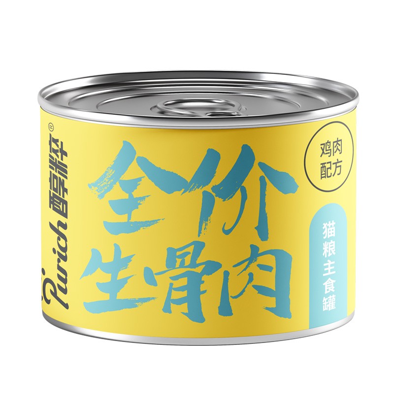 醇粹全价生骨肉猫主食罐宠物金渐层折耳英短猫咪可拌粮美味湿粮罐头 175g*48罐(鸡肉)