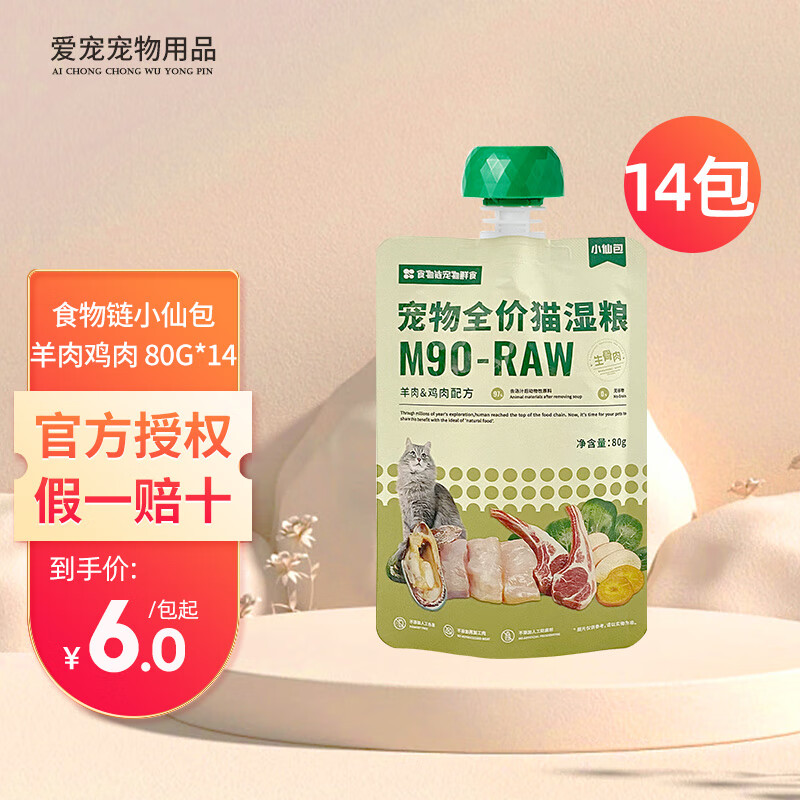 食物链 小仙包 M90全价主食猫零食猫条猫罐头猫咪零食罐头幼猫成猫罐头宠物零食 【增强抵抗力】羊肉 鸡肉80g14包