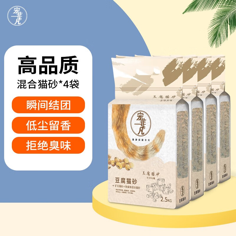 宠非凡3合1豆腐猫砂除臭6L升级除臭珠矿石猫砂混合猫沙低粉尘可冲厕所 10kg(4袋) 强吸水除臭