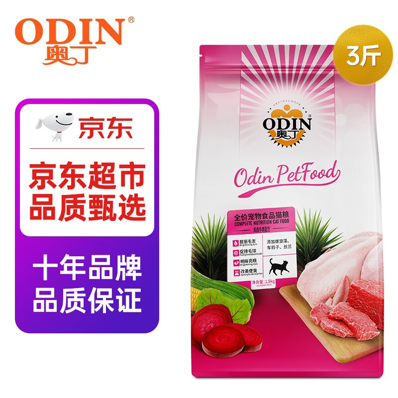 奥丁猫粮1.5kg 幼猫成猫全价全阶段天然粮 牛肉味3斤【拍两件更实惠】