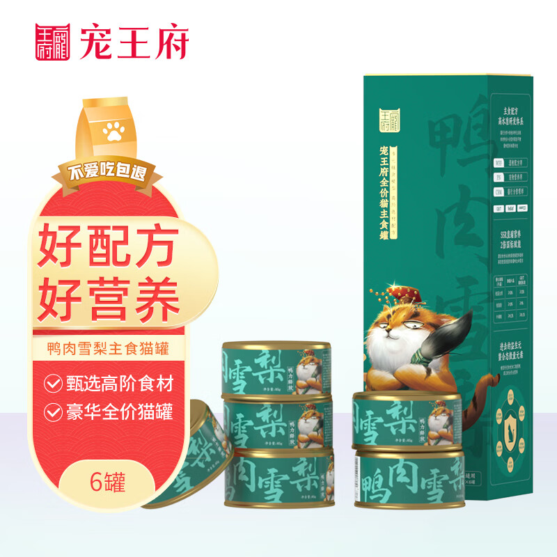 宠王府 御膳六品 全价猫主食罐 鸭肉雪梨口味85g*6