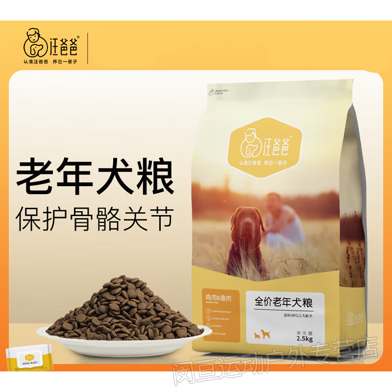 汪爸爸老年犬专用狗粮高龄犬小型犬大龄犬泰迪比熊金毛柯基通用型 2.5kg 中大型犬老年犬粮5斤【适合八岁