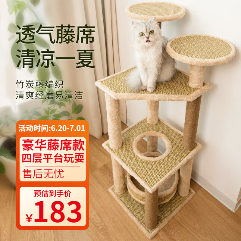 坏小宠【1.88m加粗加高柱】猫爬架大号剑麻猫窝猫咪玩具猫抓板猫抓柱毛绒布猫跳台猫架子猫玩具猫树 豪华藤席 四层款