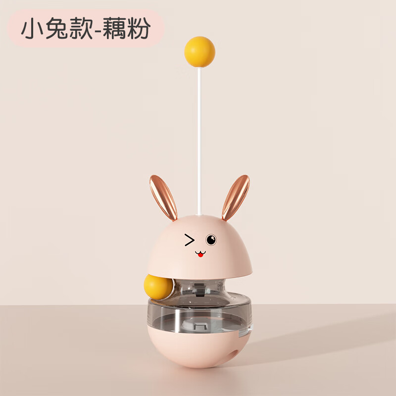 小猫喵喵 猫玩具自嗨不倒翁解闷神器逗猫棒猫转盘小猫漏食球猫猫小球玩具自动逗猫宠物猫咪用品 藕粉小兔款