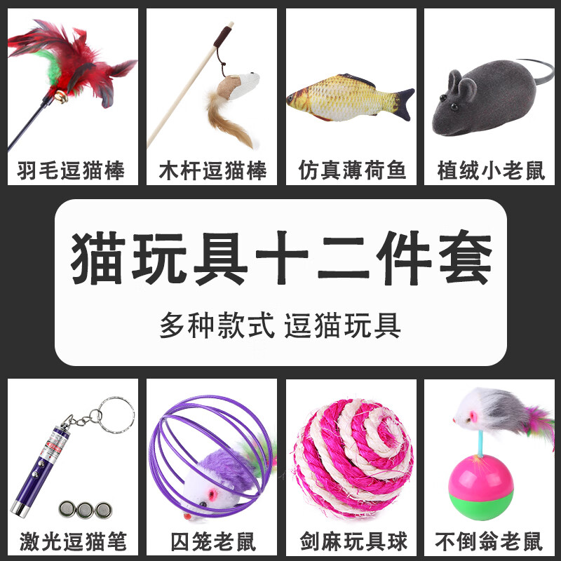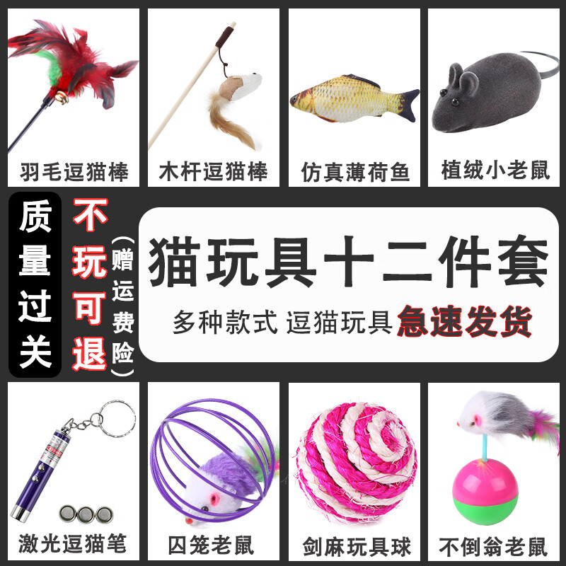 猫玩具套装自嗨激光逗猫棒幼猫羽毛宠物玩具解闷小猫猫咪用品全套 逗猫3件套.