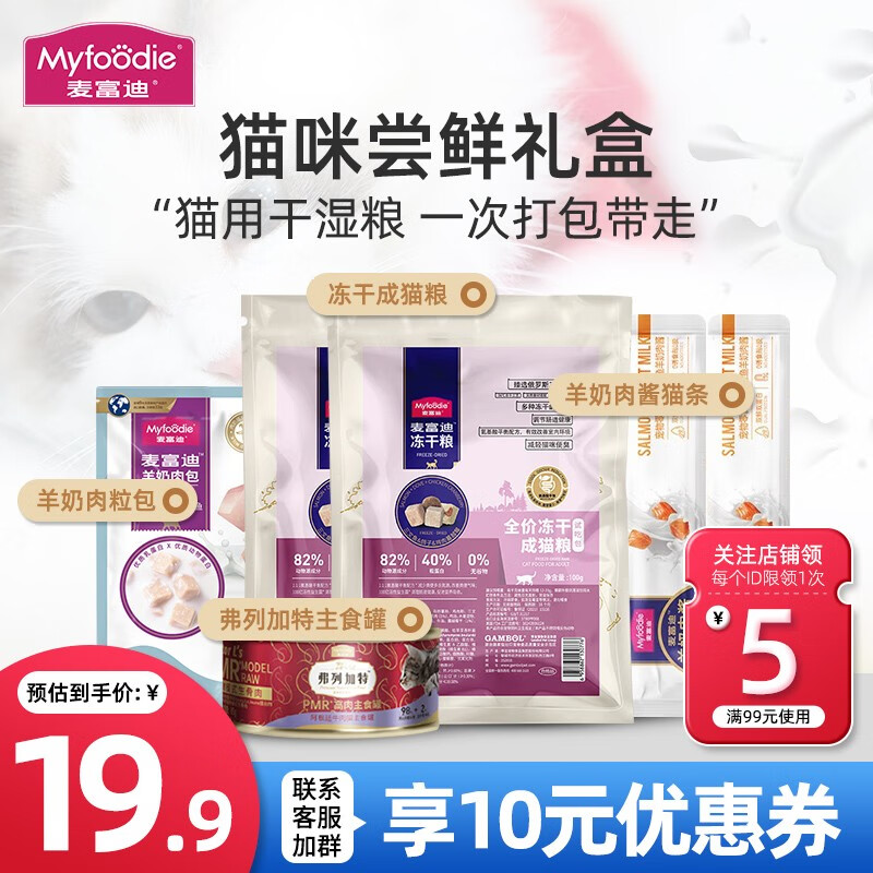 麦富迪【新客尝鲜】猫咪零食猫条猫罐头零食主食罐湿粮包冻干猫粮试吃装 19.9成猫试吃-粮 鲜包 罐头 猫条