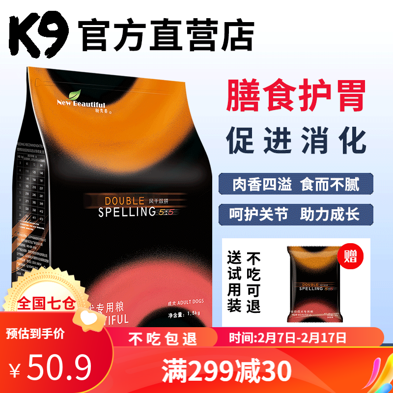 K9狗粮 成犬双拼风干粮 拉布拉多金毛柴犬中大型犬通用狗干粮 全价成犬专用粮(1.5kg)