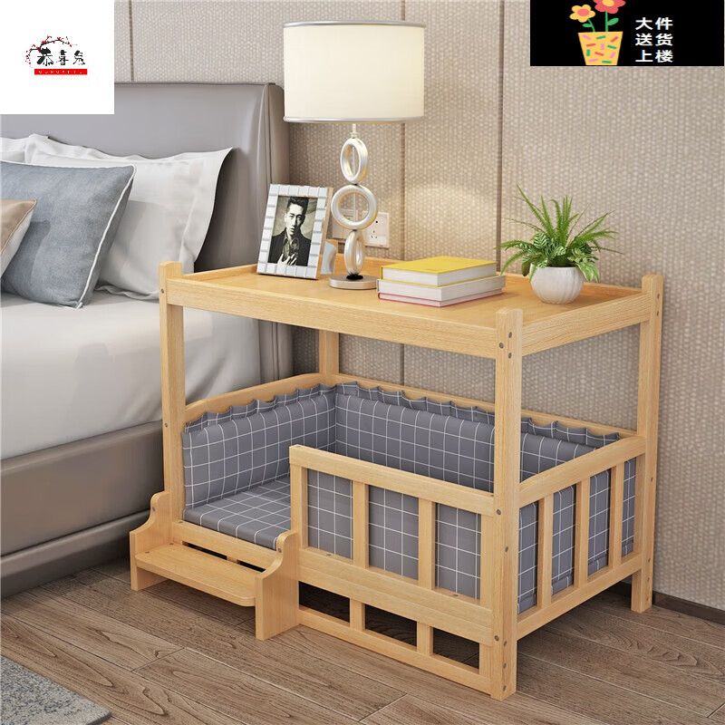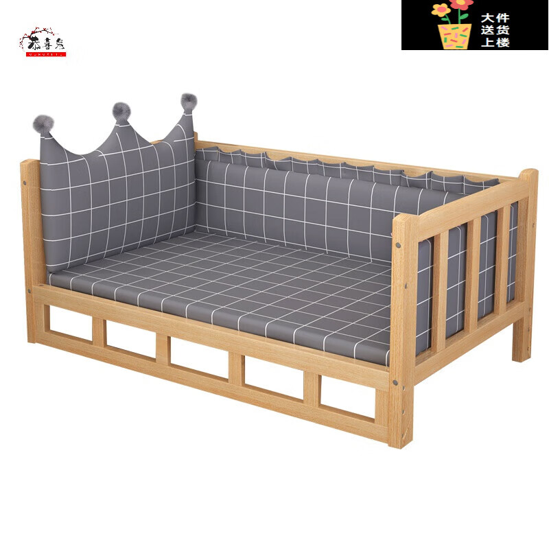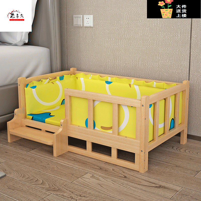 出极 狗床狗窝实木泰迪金毛可拆洗木质宠物床猫咪床四季通用猫窝床头柜【店长推荐 】 单层豪华 黄色床品 XXL-120*60*70-90斤以内