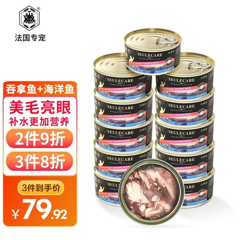 专宠 猫罐头主食 成猫宠物猫粮猫湿粮猫咪零食 白肉吞拿鱼 海洋鱼 170g*12罐