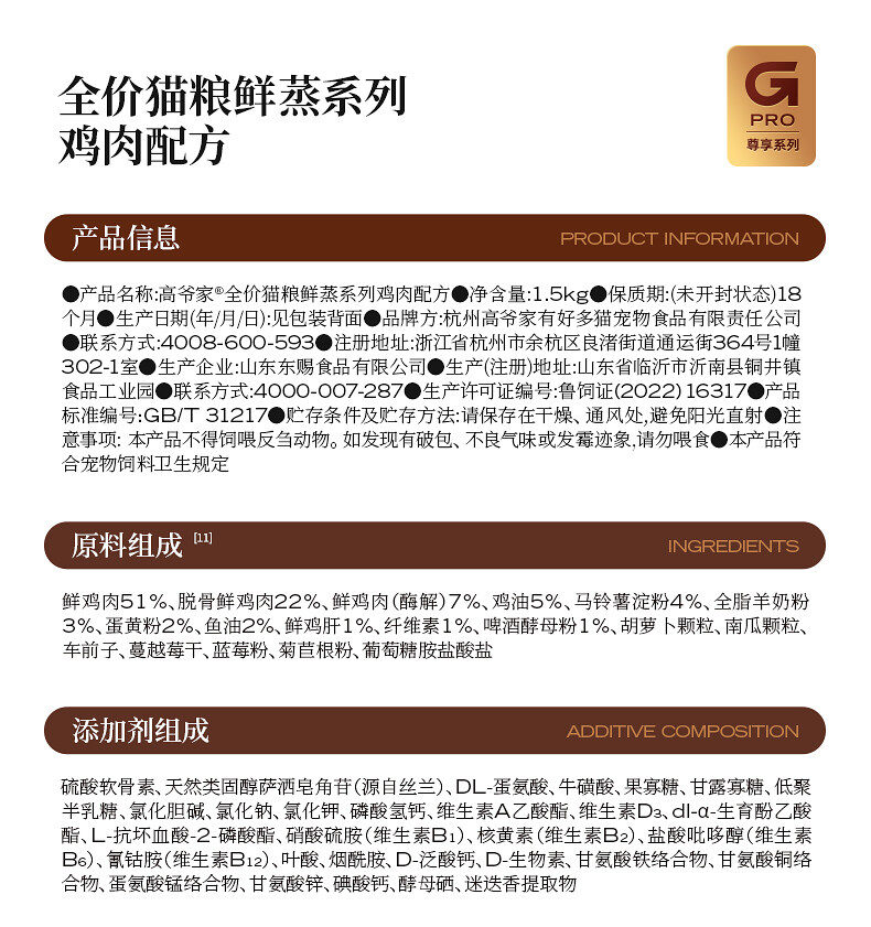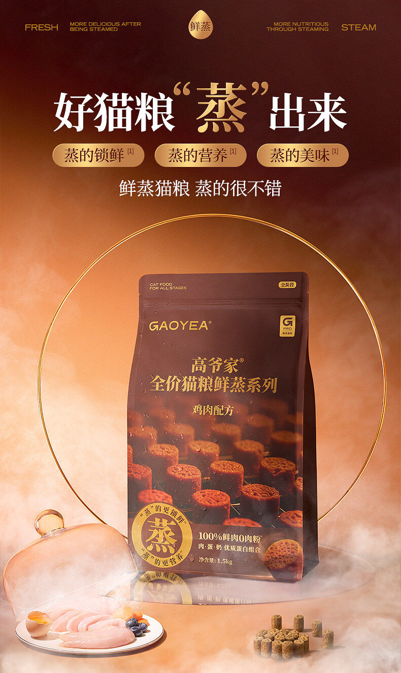 高爷家猫粮 全价猫粮鲜蒸系列鸡肉配方1.5kg