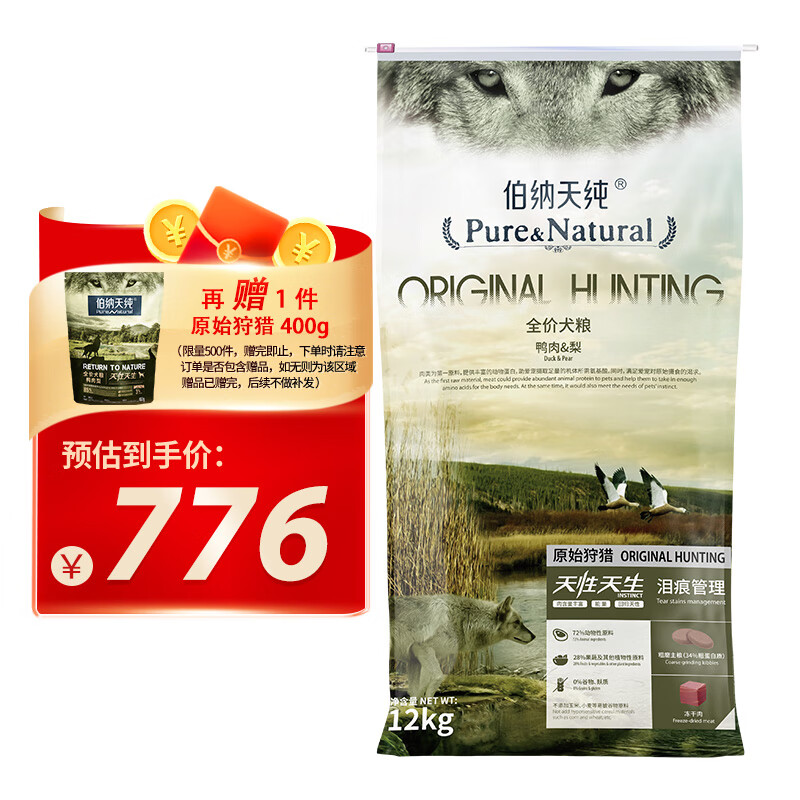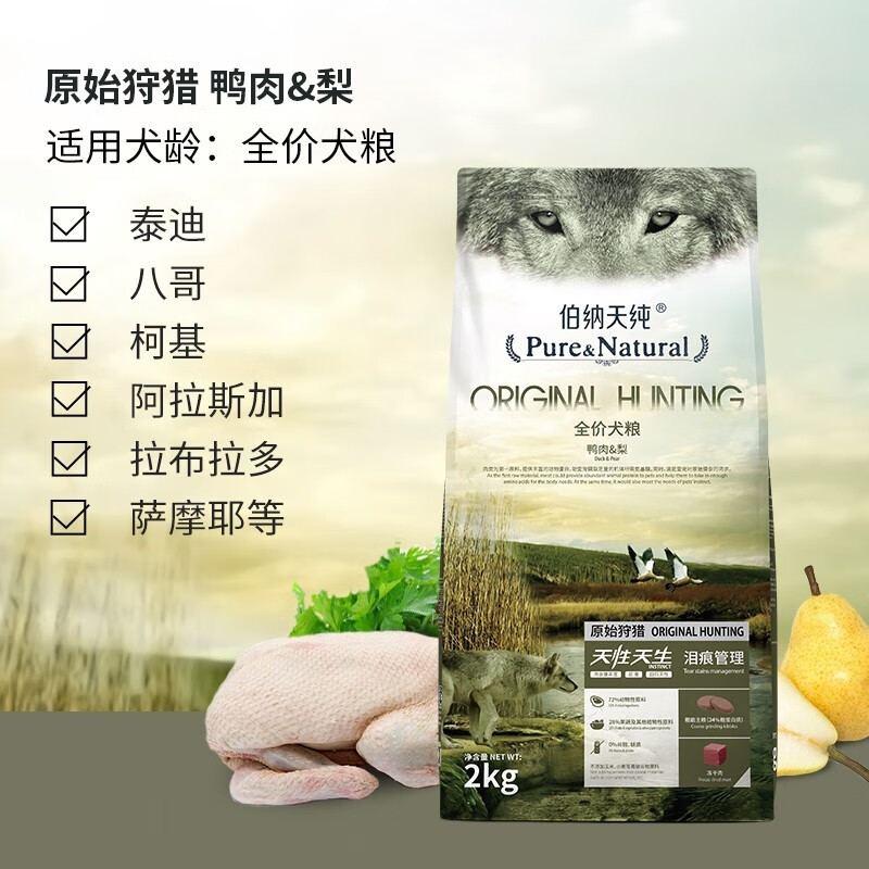 伯纳天纯宠物狗粮鸭肉梨清火缓解泪痕比熊金毛泰迪配方狗粮全年龄原始狩猎 通用款鸭肉12kg