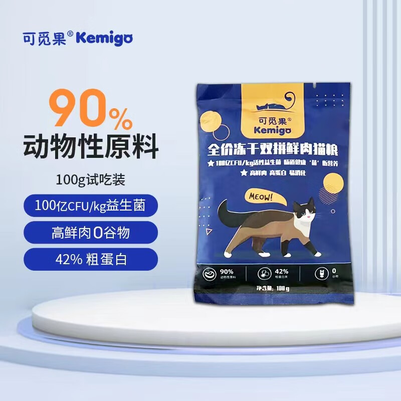 可觅果冻干双拼猫粮1.6kg 鲜肉无谷粮 成猫幼猫全价益生菌猫粮 试吃装100g