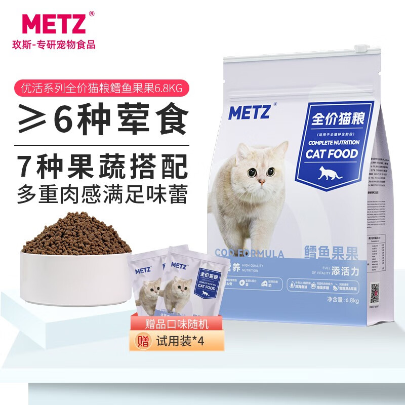 玫斯(metz)优活系列全阶段通用猫咪主粮室内猫粮鸡肉莓莓/鳕鱼果果 鳕鱼果果6.8KG