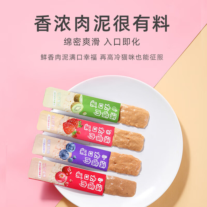 纯皓(Nutrifresh)猫粮猫零食鲜肉猫罐头小猫幼猫成猫肉条营养补水猫条 三文鱼蓝莓味(10袋) 10包