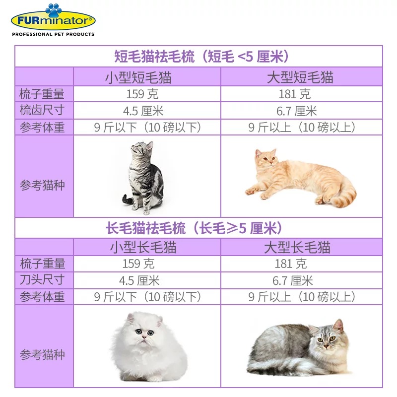 富美内特猫梳子富美内特猫梳子furminator祛毛梳宠物幼猫毛清理器梳毛刷猫咪用品 长毛猫小型(9斤以下)