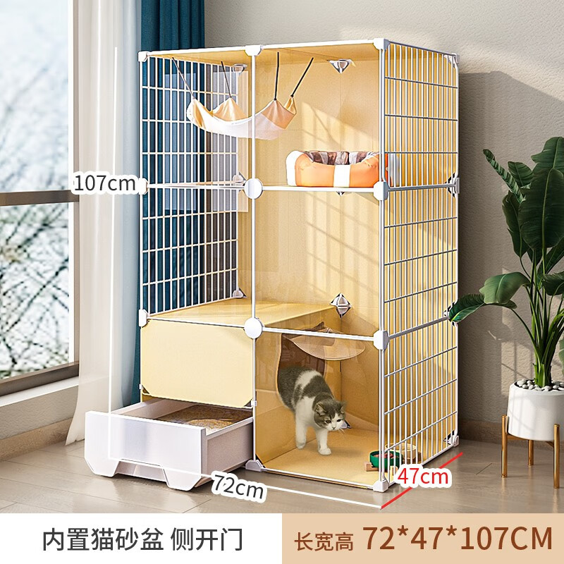 宠趣汇高清透明猫笼子大号带厕所一体自带封闭式猫砂盆宠物家用猫笼猫柜 高清透明【72*47*107】吃睡玩 吃喝玩乐:自带续水猫碗 瞄舍款