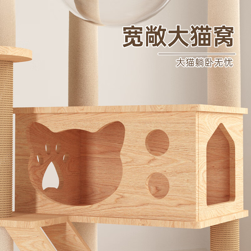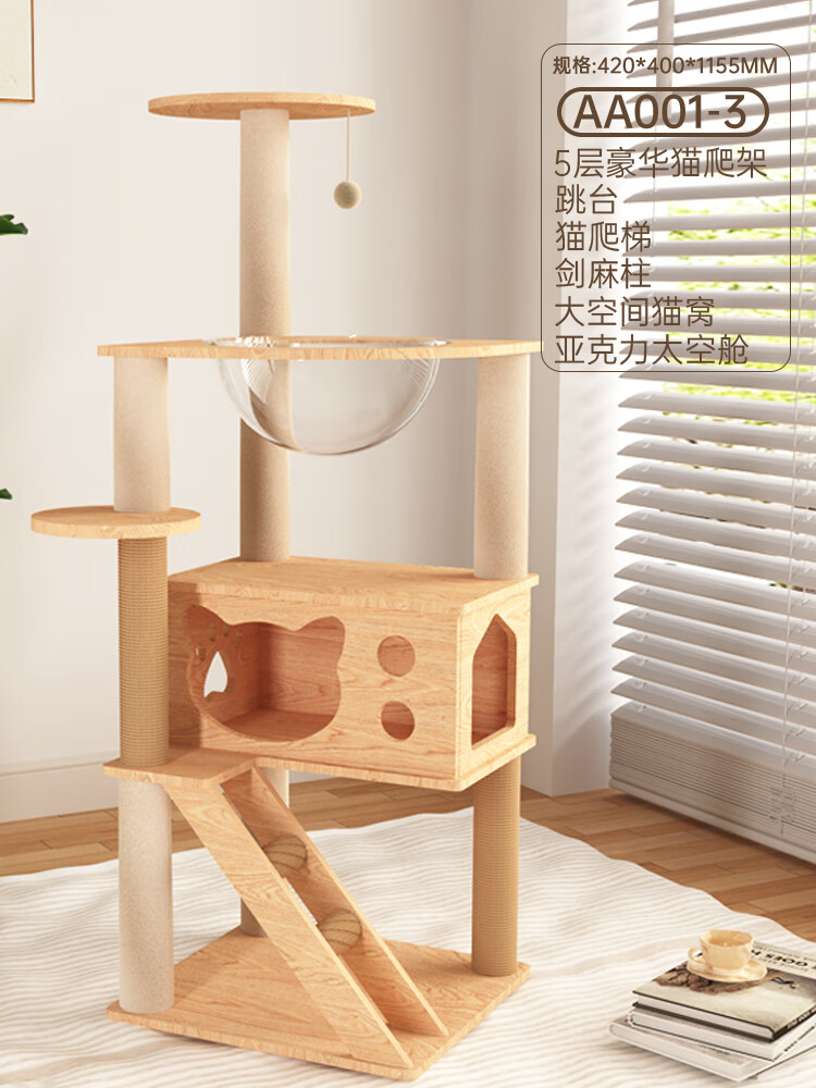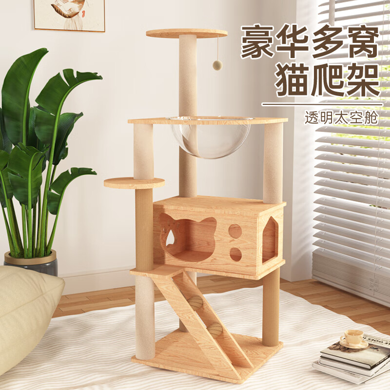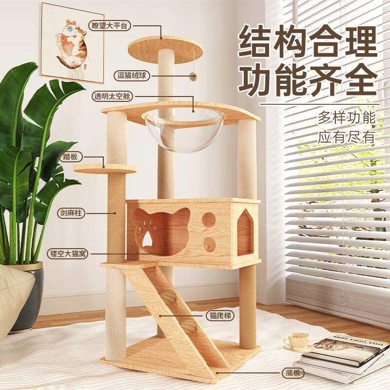 猫爬架猫窝猫树一体太空舱树干猫架子小户型猫跳台猫玩具太空舱宠物用品玩具屋 原木色(猫窝 太空舱 楼梯)
