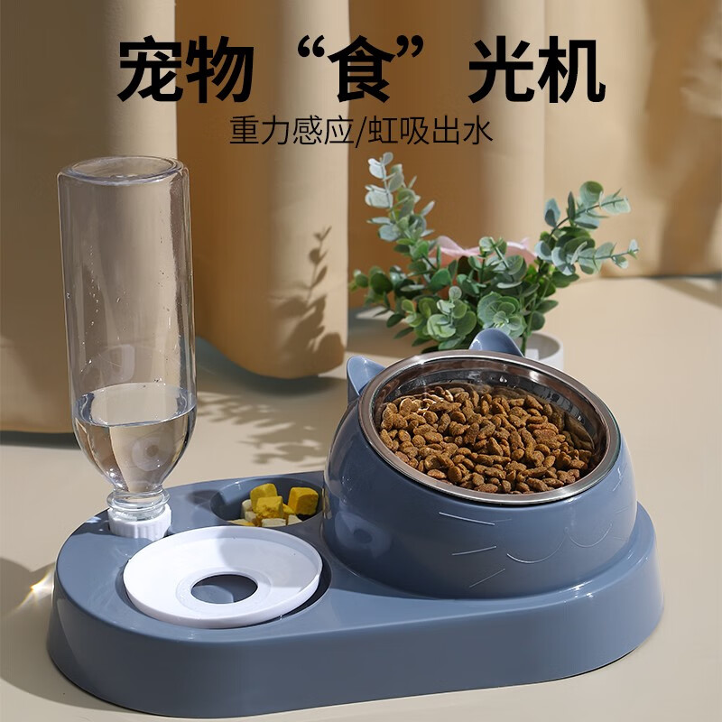 瑜品佳【不锈钢】猫咪自动饮水机喂食器猫狗食盆喝水器宠物零食猫猫饭碗 不锈钢*可放主/零食*自动饮水
