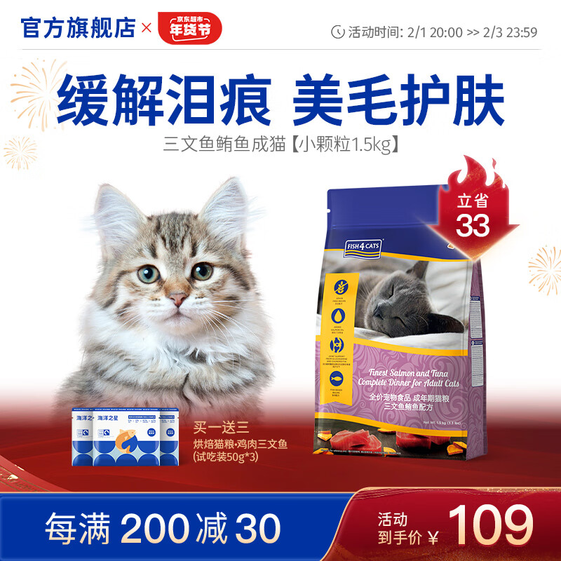 海洋之星三文鱼成猫鲔鱼猫粮天然无谷低敏布偶蓝猫成猫增肥发腮 成猫小颗粒1.5kg