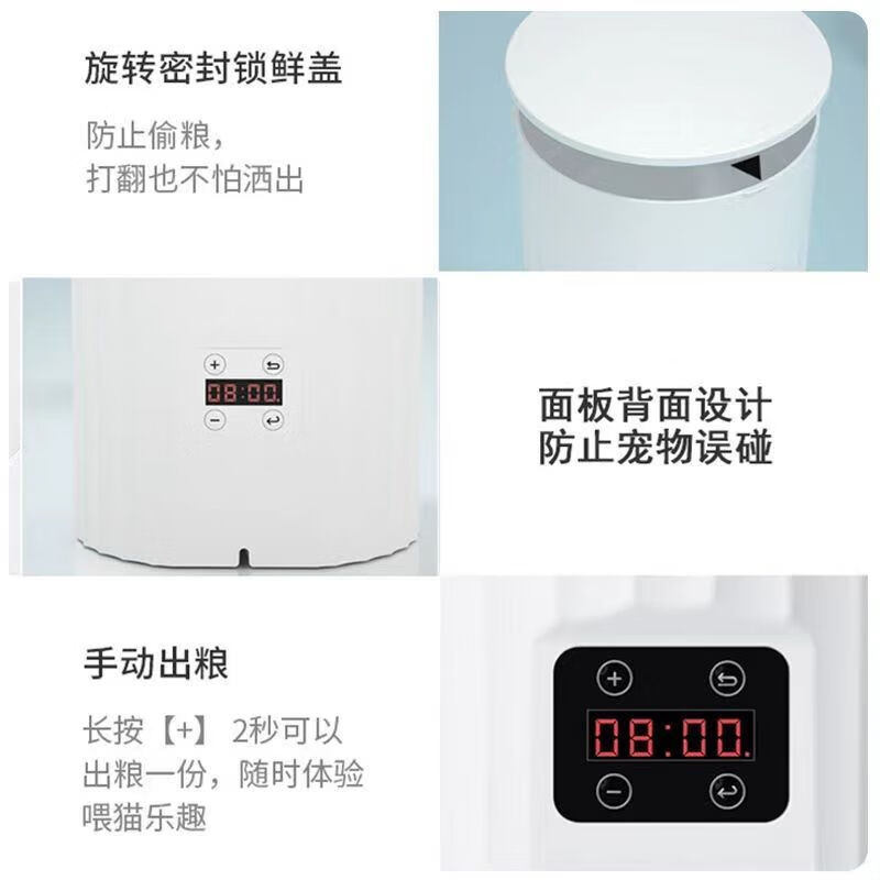 珊野自动喂食器猫宠物定时定量投食机猫粮狗粮wifi远程猫咪智能投粮机 白色 按键款